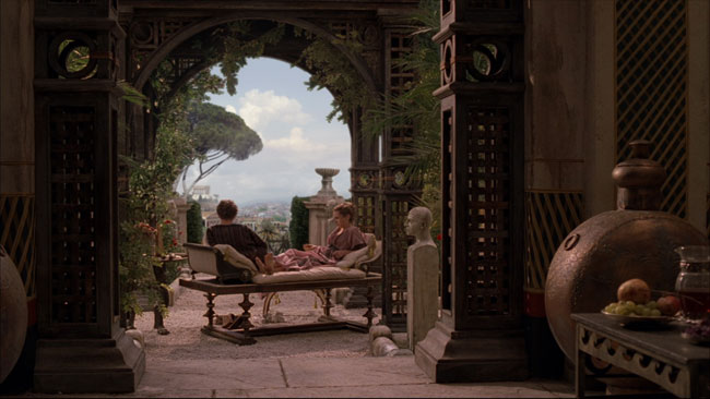Keisarin pitojen ensimmäinen kattaus: "Sisään kannetaan luonnollisen kokoinen pronssinen hevonen, jonka päällä ratsastaa Proculukseksi pukeutunut klovni. Sotatorvien törähtäessä Proculus pyllähtää alas hevosen selästä, joka aukeaa saranoillaan kahteen puolikkaaseen. Hevonen muuttuu valtavaksi tarjoiluastiaksi, josta saa syötäväkseen paistettua mureenaa riisin ja oliivien kera ynnä Gallian herkkuja: Paahdettua peuranvasaa pedillä joka sisältää valkosipulia, sipulia, ruutaa, taateleita, rusinoita, öljyä ja hunajaa, kukonpoikaa viinissä ja etanoita."