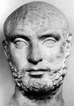 L. Caesonius Ovinius Manlius Rufinianus Bassus, vir clarissimus Rooman ehkä kaikkein vaikutusvaltaisin poliitikko. Pitkän virkauransa aikana senaattori Bassus on ollut rauhantuomari, preetori, vesihuollosta vastaava kuraattori, kahdesti konsuli, keisari Probuksen lainopillinen neuvonantaja ja hovioikeuden presidentti, kaupunginprefekti, Marsin pappi (salius Palatinus), Sol Invictuksen pappi (pontifex dei solis), tällä hetkellä koko Afrikan prokonsuli. Bassus on pyylevä ja parrakas, kohtelias ja hurskas vanhan koulukunnan aristokraatti, joka suhtautuu virkatehtäviinsä niihin kuuluvalla vakavuudella tekemättä niistä kuitenkaan numeroa. |