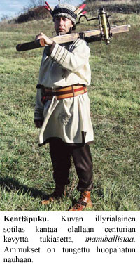Aikaisemmin Rooman armeijan vaatetuksessa ei ole ollut yhtä tiettyä linjaa, mutta illyrialaiset keisarit ovat viimeisen 20 vuoden aikana aloittaneet suuren sotilaspuku-uudistuksen joka on johtanut selkeämpiin ja yhdenmukaisempiin ratkaisuihin. Sotilas lunastaa itselleen palvelukseen astuessaan seuraavat univormuun kuuluvat vaatekappaleet: