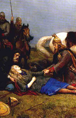 Valkyyria; on säädetty, että kuolee tyttärinen Britanniassa. Hevonen: Bukefalos. Ei kuole ennen emäntäänsä. Kirottu miekka Tyrfing, joka tappaa miehen joka kerta kun se vedetään huotrasta, tuottaa maailmaan kolme pahuutta ja jota vain nainen voi kantaa. |