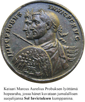 Nykyään on menty askeleen verran pidemmälle. Keisarilla on erityinen, henkilökohtainen jumalsuhde, jonka ansiosta taivaallinen "tosi jumala" samastuu hänen henkilöönsä. Keisari Marcus Aurelius Probus valitsi Sol Invictuksen kumppanikseen (comes) ja lyötätti rahoja, joissa hän esiintyi jumalan rinnalla tasaveroisena partnerina. Valerius Diocletianus on Juppiterin poika, Jovius, ja siksi häntä idässä kunnioitetaan nimellä dominus et deus, herra ja totinen jumala. Roomalaisen religion kannalta keisari ei kuitenkaan missään tapauksessa ole deus, vaan jumalan poika, divus filius. Keisarin muuttuu jumalaksi kuoleman jälkeisessä apoteoosissa, luovuttaen samalla keisarillisen jumalhengen seuraajalleen.