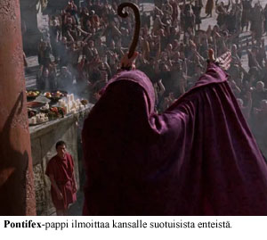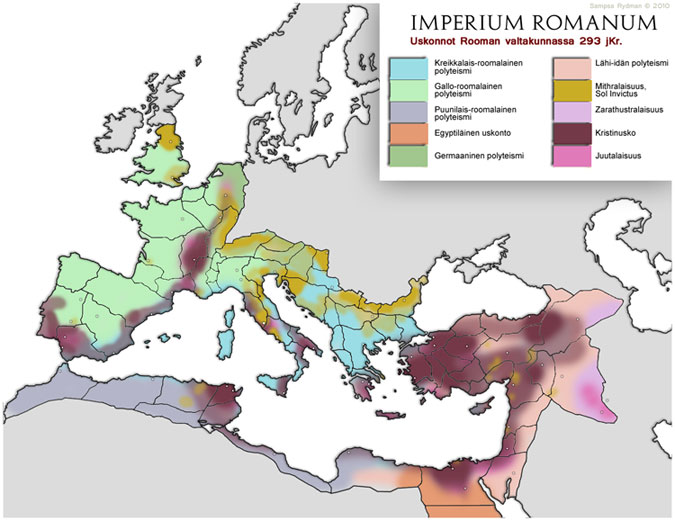 Kristinusko oli alunperin luokiteltu vaaralliseksi superstitioksi, mutta Gallienuksen konkordaatista lähtien sillä on ollut virallinen asema. Kristittyjen ja valtion ristiriidat johtuvat siitä, että kristityt loukkaavat yhteiskuntarauhaa kieltämällä kaikki muut jumalat, eivät vanno uskollisuudenvalaa keisarille ja välttelevät asepalvelusta. Kristittyjä syytetään ateismista, jumalienkieltämisestä, joka on vakava rikos: onhan sopu jumalten kanssa koko Rooman valtakunnan olemassaolon tae. Religio romanan tarkoitus on tarkasti toistettujen rukouksien ja rituaalien kautta lepyttää korkeampia voimia, jumalia ja esi-isiä. Näin saavutettu korkeampien voimien hyvä tahto sitoo heidän menestyksensä perheen ja valtion menestykseen. Siitä seuraavaa harmoniaa kutsutaan nimellä pax deorum, jumalten rauha.