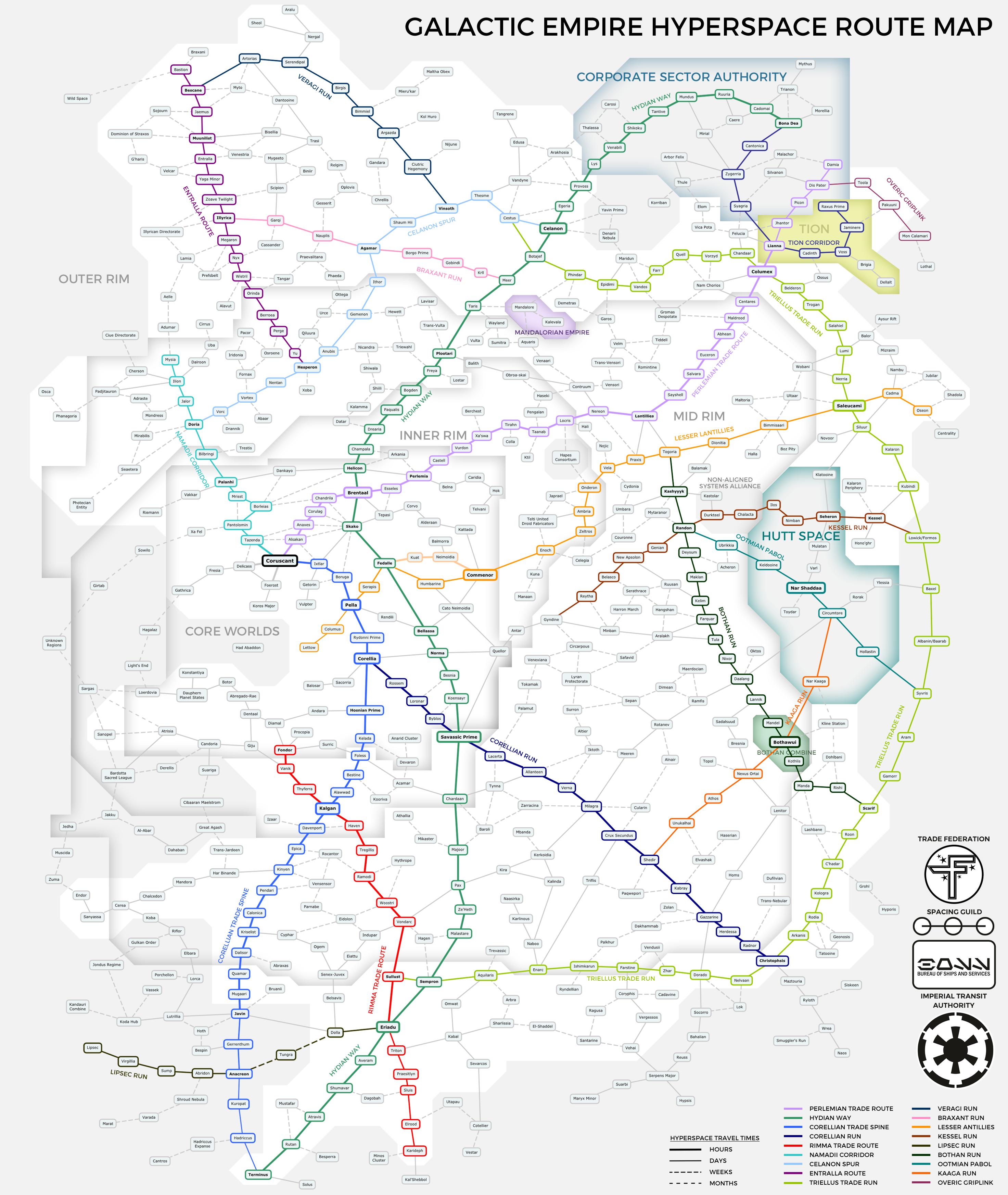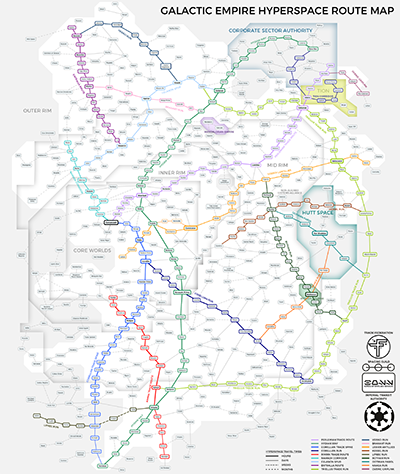 Linnunrata on mielettömän iso. Halkaisijaltaan 200 000 valovuotta (61 kiloparsekkia) pitkä ja 2 000 valovuotta paksu kiekko, jossa on arviolta 400 miljardia tähteä ja 20 biljoonaa planeettaa. Vain puolet niistä tunnetaan mitenkään kattavasti. Elämää muodossa tai toisessa ylläpitäviä planeettoja tunnetaan noin 50 000. Ihmisten, tavaroiden ja informaation valoa nopeampi liikkuminen tuli mahdolliseksi ihmiskunnan opittua manipuloimaan painovoimaa ja siten aikaa ja ainetta itseään. Taivuttamalla paikallista avaruutta itseensä on mahdollista luoda sellainen polku pisteiden A ja B välille, jossa kappale ulkopuolisen tarkkailijan näkökulmasta näyttää liikkuvan valoa nopeammin. Ilmiö on pohjimmiltaan sama kuin maailmankaikkeuden laajenemisessa: Kaksi kappaletta voi erkaantua toisistaan näennäisesti valoa nopeammin, koska tila kappaleiden välillä laajenee. Taivutettua n-ulotteista avaruutta kutsutaan puhekielessä hyperavaruudeksi, reittiä pisteiden välillä tähtipoluksi ja matkustamista itseään hypyksi. |