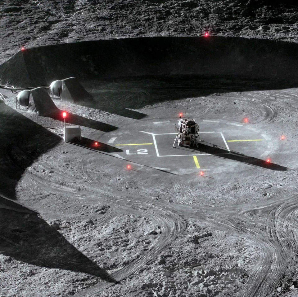 ![]() Luokan I laskeutumisalusta ilmattomalla planeetalla. Useimmat luokan I laskeutumisalustat ovat uusissa siirtokunnissa ja kehittymättömissä maailmoissa. |