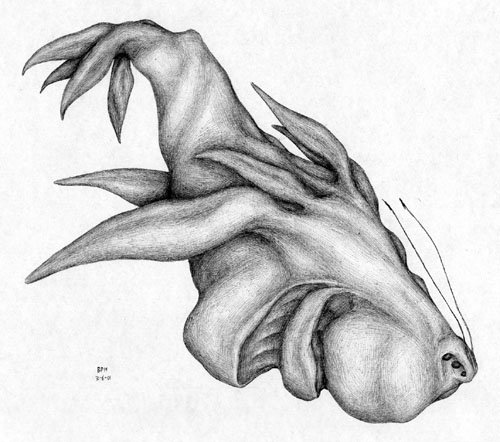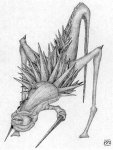 on helppo tunnistaa viikatemaisista ulokkeista raajojen päissä.