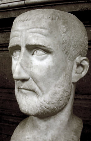 L. Caesonius Ovinius Manlius Rufinianus Bassus, vir clarissimus Rooman ehkä kaikkein vaikutusvaltaisin poliitikko. Pitkän virkauransa aikana senaattori Bassus on ollut rauhantuomari, preetori, vesihuollosta vastaava kuraattori, kahdesti konsuli, keisari Probuksen lainopillinen neuvonantaja ja hovioikeuden presidentti, kaupunginprefekti, Marsin pappi (salius Palatinus), Sol Invictuksen pappi (pontifex dei solis), tällä hetkellä koko Afrikan prokonsuli. Bassus on pyylevä ja parrakas, kohtelias ja hurskas vanhan koulukunnan aristokraatti, joka suhtautuu virkatehtäviinsä niihin kuuluvalla vakavuudella tekemättä niistä kuitenkaan numeroa. |