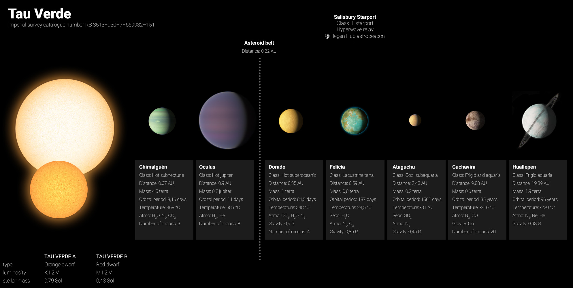 Feliciaksi nimetty elinkelpoinen planeetta Tau Verde -järjestelmässä kartoitettiin 600-luvulla vanhan Tasavallan rappion vuosina. Planeettaa oli maankaltaistettu jo ensimmäisten asuttajien aikana, mutta sen kaffereiksi kutsutut alkuperäisasukkaat taantuivat kivikaudelle. Uusi asutusaalto Feliciaan alkoi 700-luvulla Hegemonian espanjankielisiltä planeetoilta. Hegemonia solmi alkuasukkaiden päälliköiden kanssa käyttöoikeussopimuksia, joiden nojalla Feliciaan perustettiin kultakaivoksia ja plantaaseja.