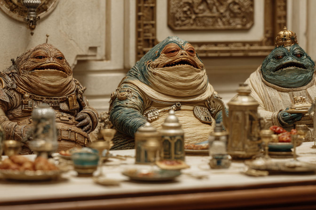 Suhde oli epäsymmetrinen. Huttit käyttivät vapaakauppaa ja orjatyövoimaa heikentääkseen kilpailijoitaan. He pyrkivät murentamaan tasavallan rakenteita ja pitämään sen sisäisesti riitaisena. Paras esimerkki huttien vaikutusvallasta oli Tasavallan kyvyttömyys puuttua orjuuteen. Hierarkia pysyi koko ajan suljettuna ulkopuoliselta pääomalta ja vaikutusvallalta. Kun Tasavalta lopulta ajautui sisällissotaan, virtauksen doktriini joutui koetukselle. Kloonien sodassa Hierarkia vaurastui nopeasti käymällä kauppaa kummankin osapuolen kanssa. Sota tuotti kuitenkin suuria muutoksia Tasavallan rakenteisiin. Siitä tuli keskitetysti hallittu ja militarisoitu Imperiumi, joka kukisti kilpailijansa ja katkaisi vuosisatoja kestäneen parasiittisen suhteen huttien kanssa. Uusi järjestys ei sallinut kilpailevien varjohallitsijoiden olemassaoloa. Imperiumi pyrki ottamaan koko Linnunradan talouselämän omaan rautaiseen otteeseensa. Orjuus kriminalisoitiin kaikkialla paitsi huttien Hierarkiassa. Monet aiemmin arvostetut huttien raharuhtinaat leimattiin gangstereiksi ja rikollisiksi. Hierarkia on käynyt puolustuskannalle, kietoutunut itseensä kuin kotilo, ja odottaa pahojen aikojen menevän ohi – kuten ne aina lopulta menevät.
